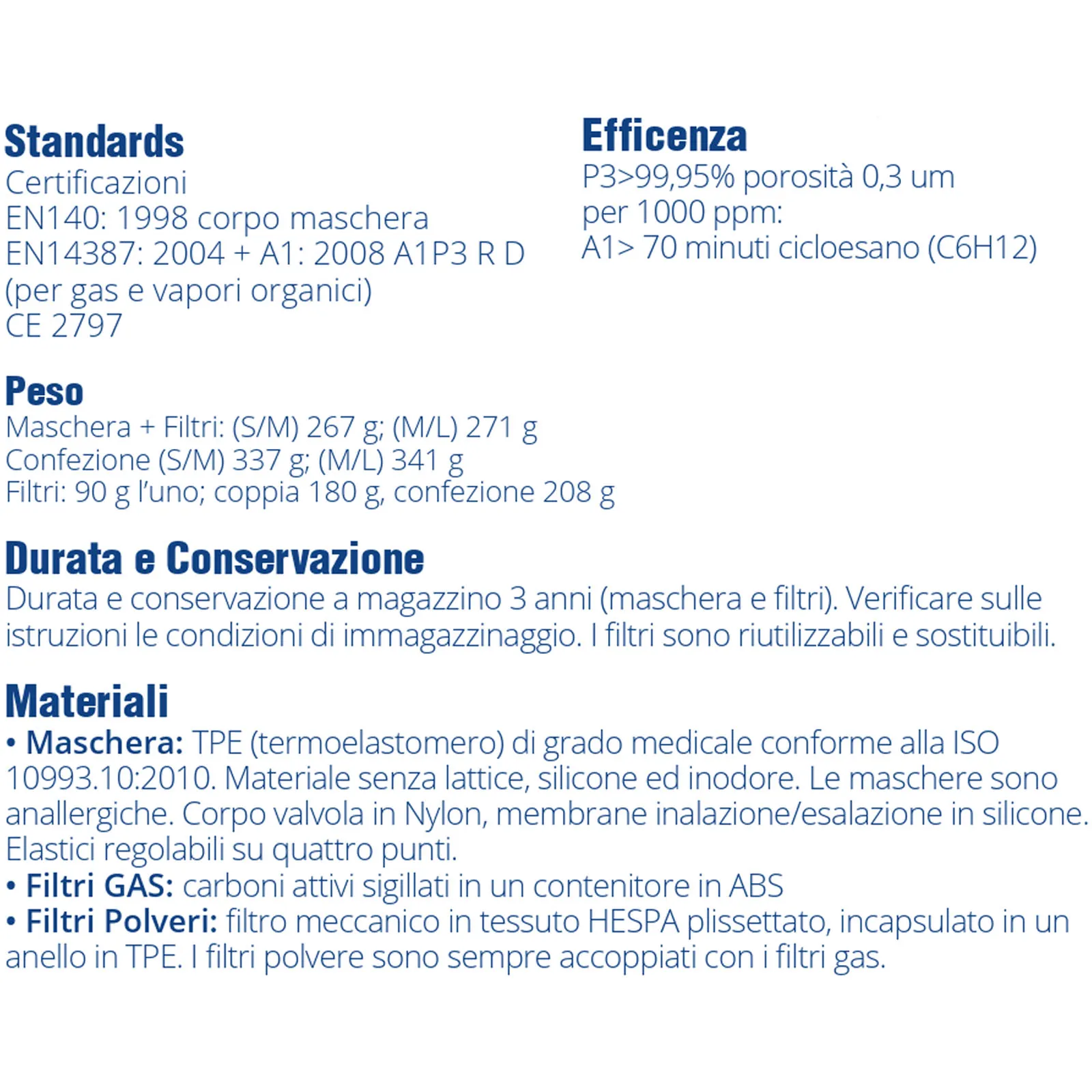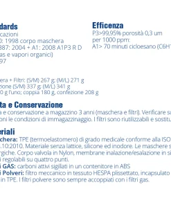 – Durata 5 anni per maschera e filtri.