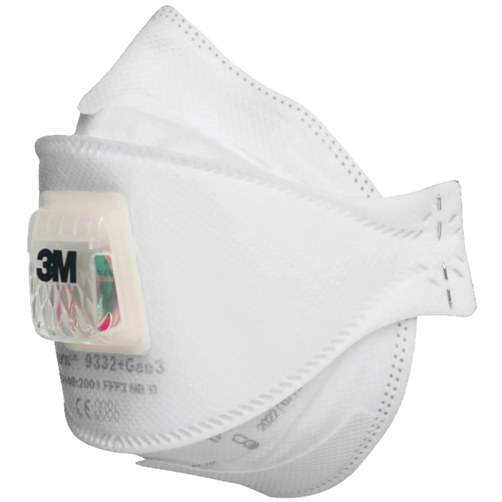 Questa è la terza generazione del respiratore pieghevole antiparticolato 3M Aura più venduto, con l’originale design pieghevole a 3 lembi.