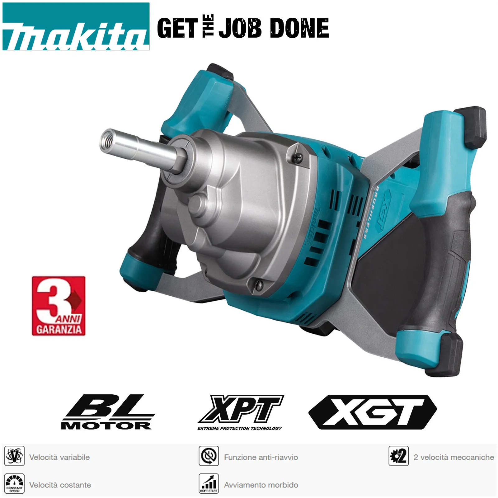 Miscelatore con motore BL-Motor Brushless (senza spazzole) che non richiede manutenzione, ad alte prestazioni grazie alla nuova tecnologia 40Vmax XGT di Makita.