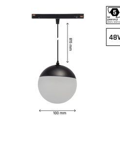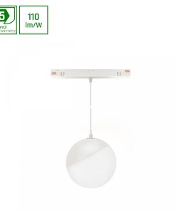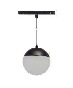 Lampada sferica a sospensione per montaggio a binario. Un elemento luminoso dallo stile moderno ed essenziale, in grado di conferire fascino e stile agli ambienti.