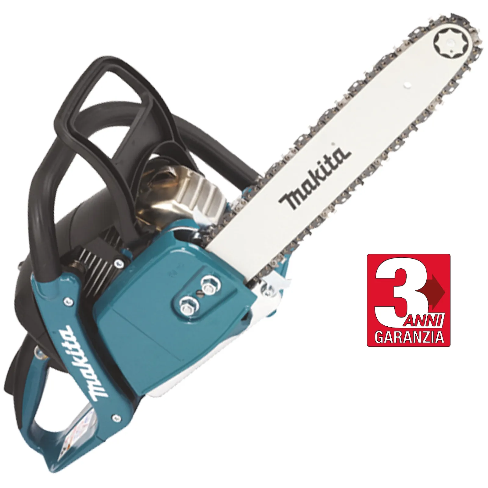 La motosega a scoppio Makita EA4300F45C per potatura con un potente motore da 3,0 CV, alla quale si possono applicare barre da 38 e 45 cm.