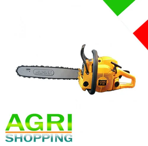 Motosega ALPINA P46 con nuovo motore 45,1 cc e barra e catena da cm 45 (18″) originali ALPINA di ottima qualità.