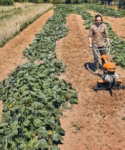 La motozappa MH 600 è particolarmente potente, ideale per lavorare su grosse superfici e terreni difficili. Costruzione robusta, due marce avanti e una retromarcia, filtro dell’aria a bagno d’olio per ambienti polverosi e di facile manutenzione. Elemento frenante regolabile per vari lavori, condizione del suolo e statura dell’operatore. Larghezza lavoro massima: 78 cm. Motore STIHL EHC 600