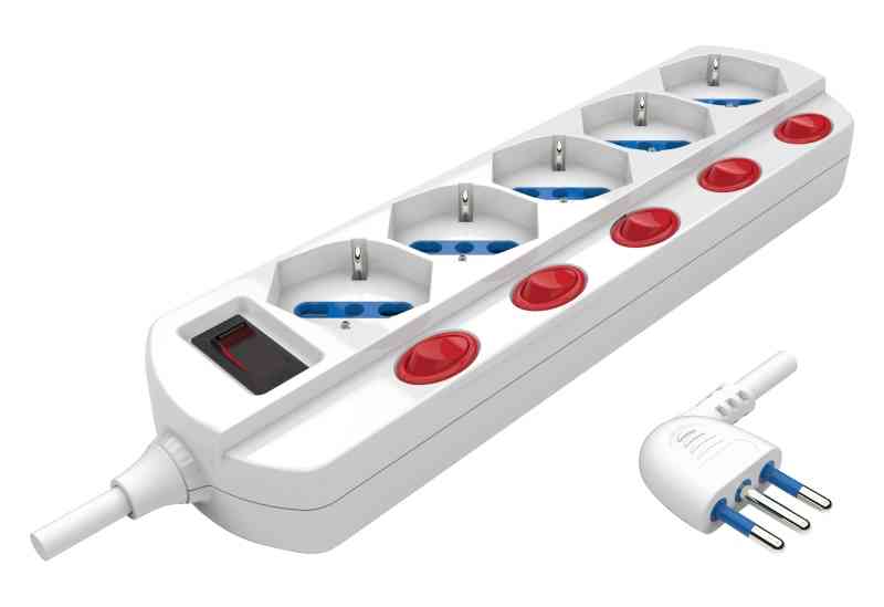 Mulitipresa 5 prese Schuko/Bipasso interruttore indipendente – Spina 10A