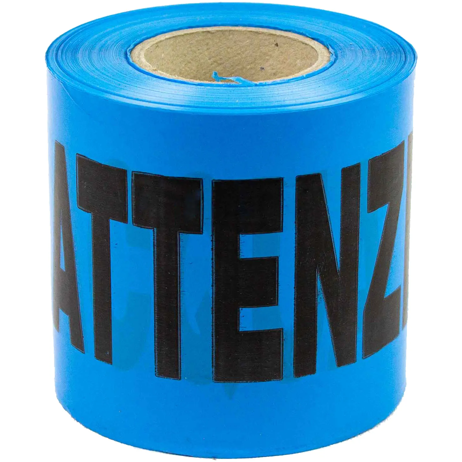 Nastro blu segnaletico “ATTENZIONE TUBO ACQUA” in materiale plastico, non adesivo.