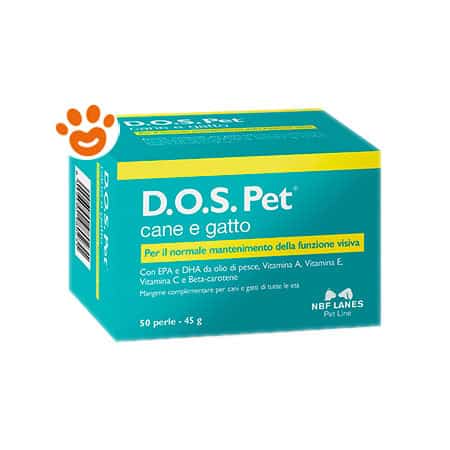 D.O.S. Pet è un mangime complementare contenente principi nutrizionali quali acidi grassi omega 3 da olio di pesce, vitamine E, C, A e beta-carotene per il mantenimento della normale funzione visiva, soprattutto in animali anziani.