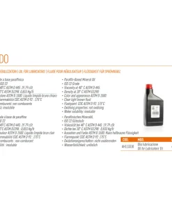 Contiene additivi anti-ossidanti, antiusura, a basso residuo carbonioso, a bassa viscosità e con un elevato punto di infiammabilità.