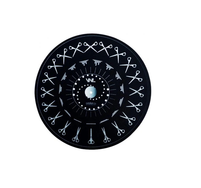 Il design dello slipmat utilizza diversi elementi legati alla cultura dei DJ: