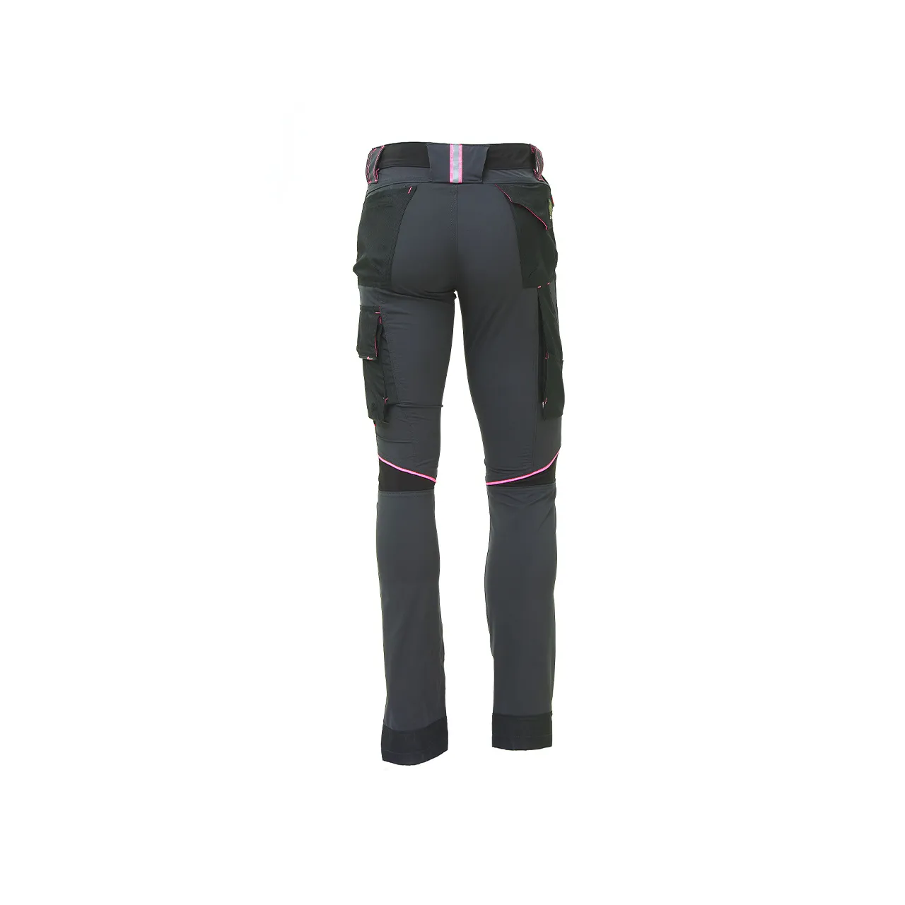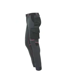 Tasca laterale porta utensili, multifunzionale con porta badge a scomparsa, due tasche posteriori di cui una con pattina e una con chiusura di sicurezza a velcro, battitacco in resistente polyoxford 600D.