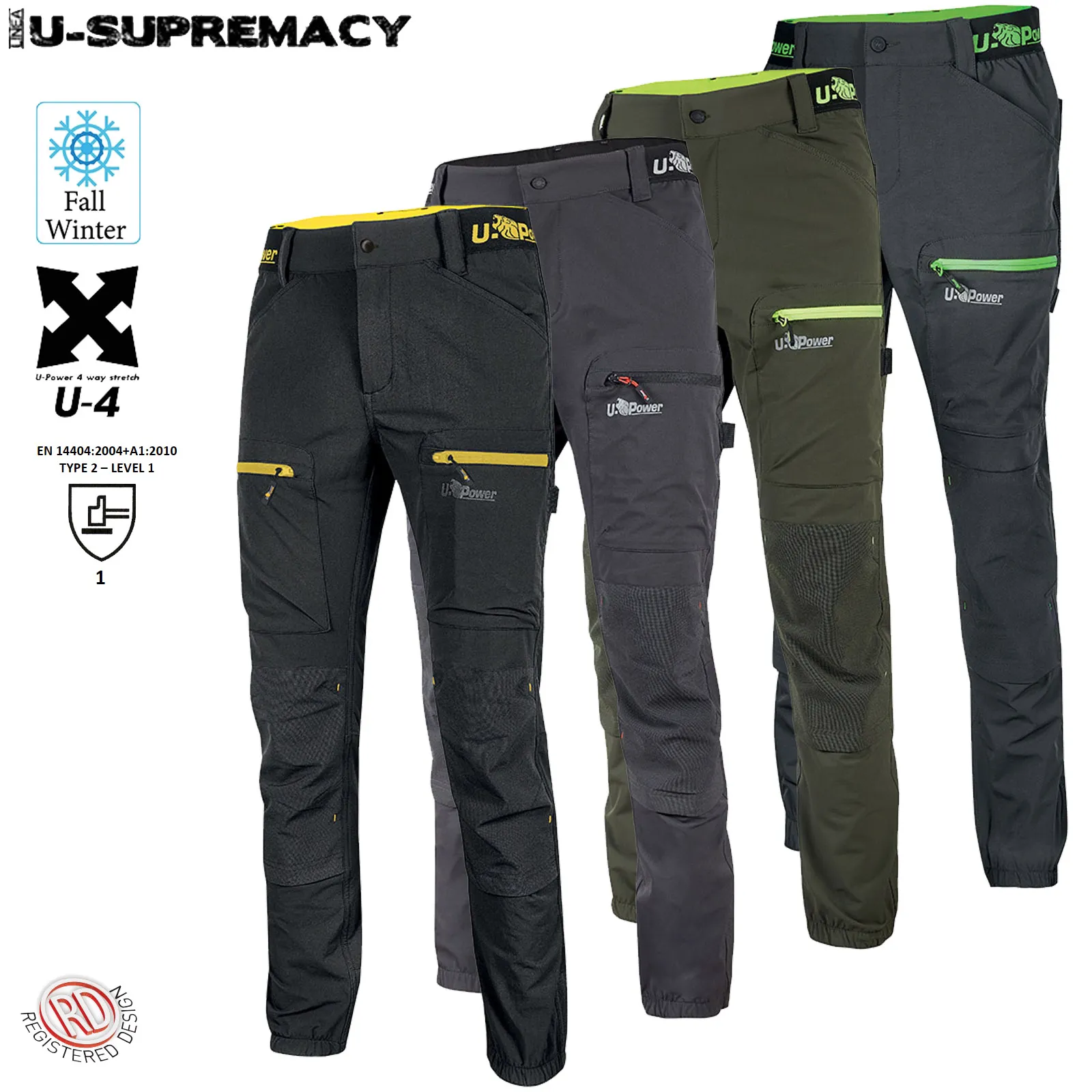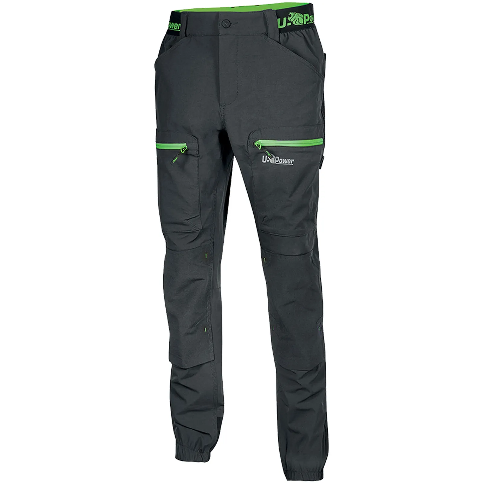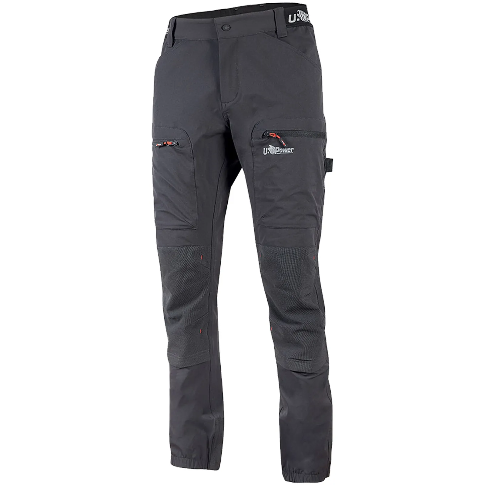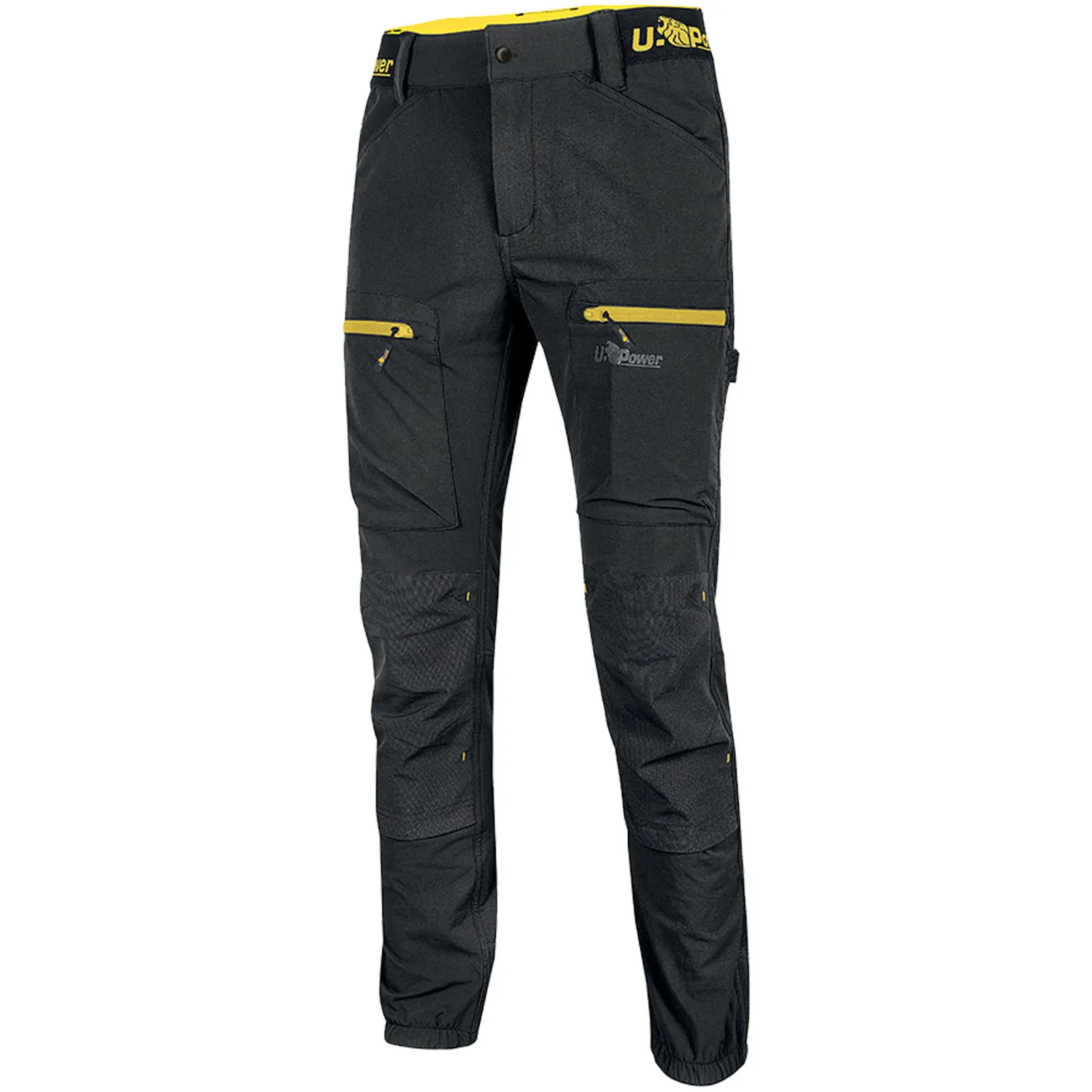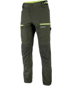 Pantaloni da lavoro stretch in tessuto U-4 con vestibilità jogging e inserti elasticizzati in vita e sul fondo per offrire una migliore vestibilità.