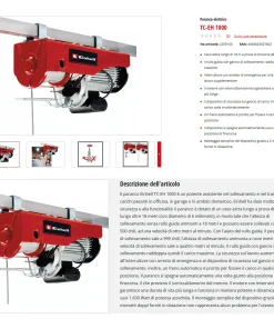 L’argano elettrico Einhell TC-EH 1000 è un potente alleato per il sollevamento e il trasporto di carichi pesanti, ideale per edilizia, officine meccaniche, garage e contesti domestici.