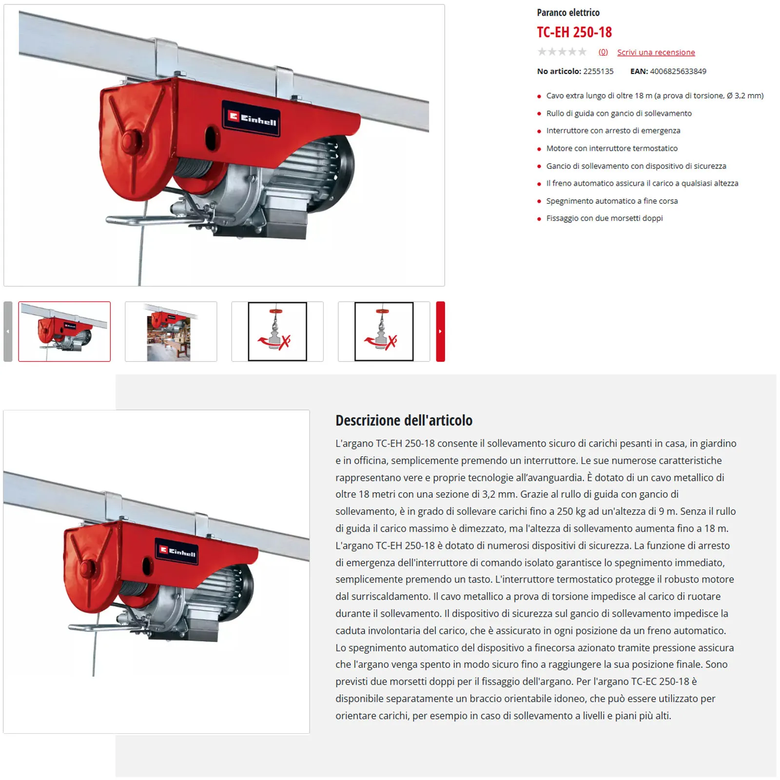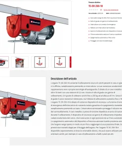 Il Paranco Elettrico Einhell TC-EH 250-18 è la soluzione professionale per sollevare carichi fino a 250 kg in totale sicurezza, ideale per cantieri, officine e lavori domestici.