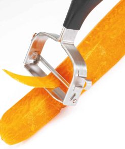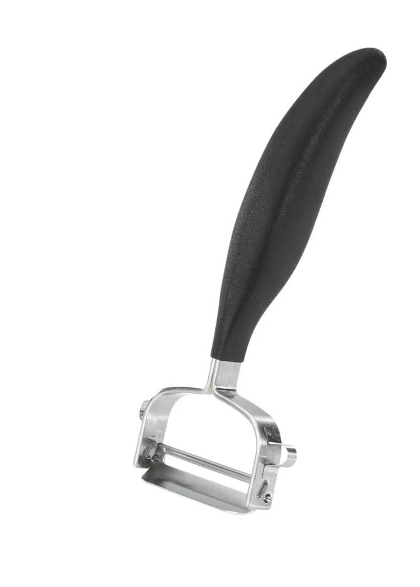 Il pelapatate giapponese con supporto in acciaio inossidabile 18/10 è un dispositivo che può sia tagliare che sbucciare. Le speciali lame affilate in acciaio giapponese non hanno pietà. Tuttavia, si annidano in modo sicuro e facile nella mano. Il pelapatate giapponese estremamente affilato si distingue per la qualità del prodotto del marchio tedesco. Un’altra caratteristica è l’esclusiva ergonomia della maniglia che rende il lavoro così piacevole. Il Pelapatate “Universale”: per sbucciare asparagi, verdura e frutta.