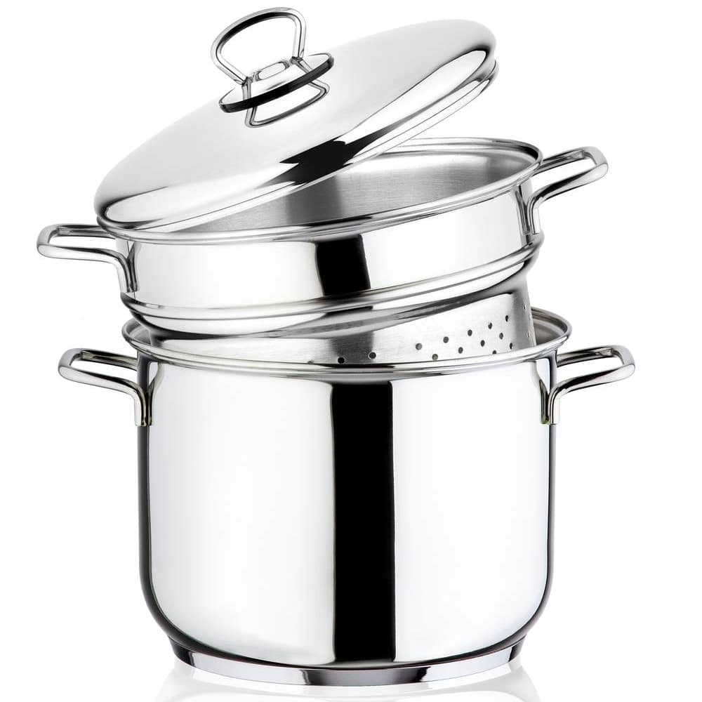 Il set è composto da 3 pezzi: pentola, cestello cuoci-colapasta e coperchio.