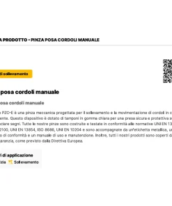 Ogni pinza è accompagnata da un’etichetta metallica che attesta la conformità alle normative vigenti, un certificato di conformità e un manuale d’uso e manutenzione dettagliato.