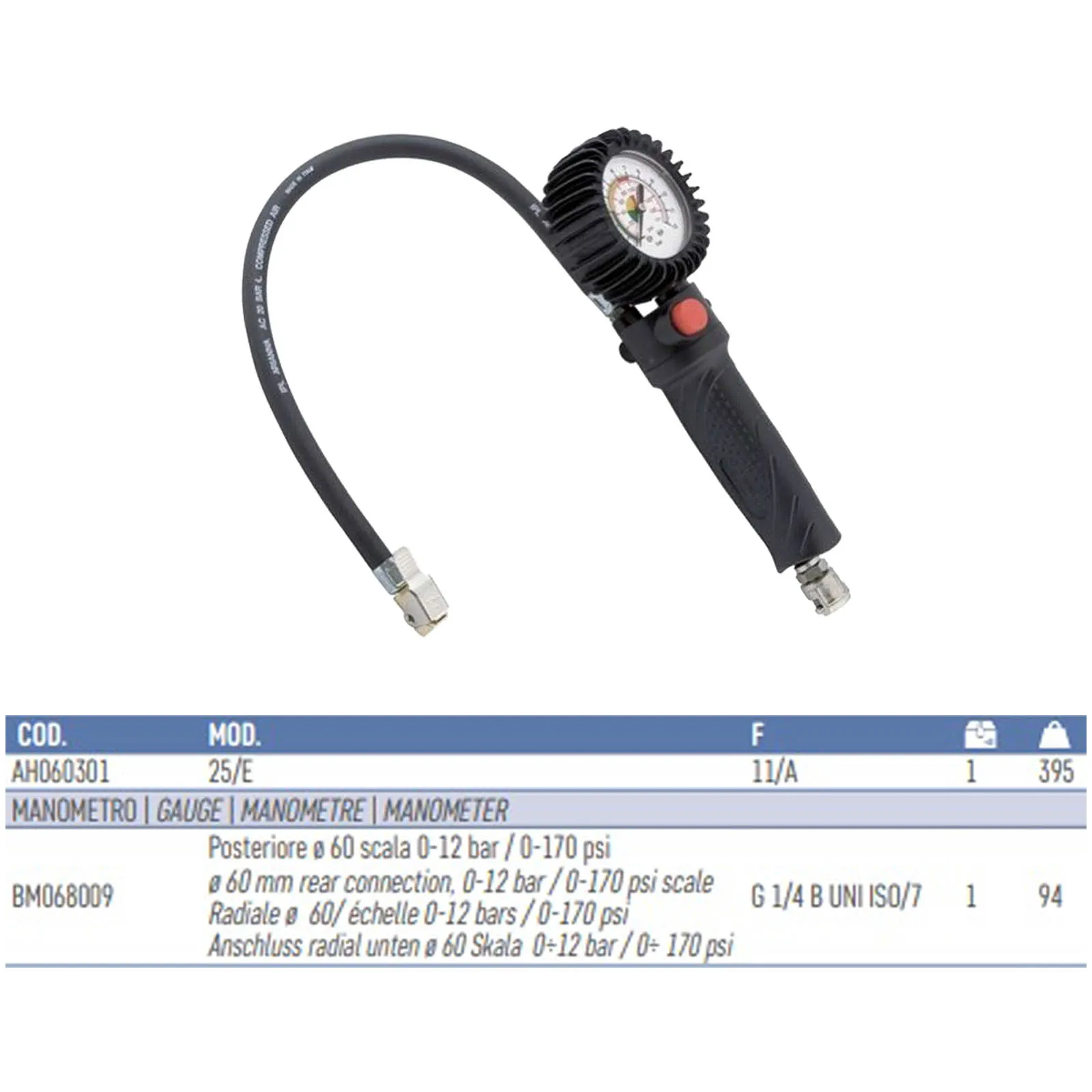 Pistola di gonfiaggio con manometro Ø 60mm.