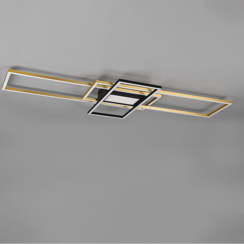 Lampada da soffitto Irvine. Forme geometriche e dal taglio squadrato che si sovrappongono, dando vita a un elemento luminoso accattivante, che si inserisce alla perfezione in qualsiasi contesto contemporaneo.