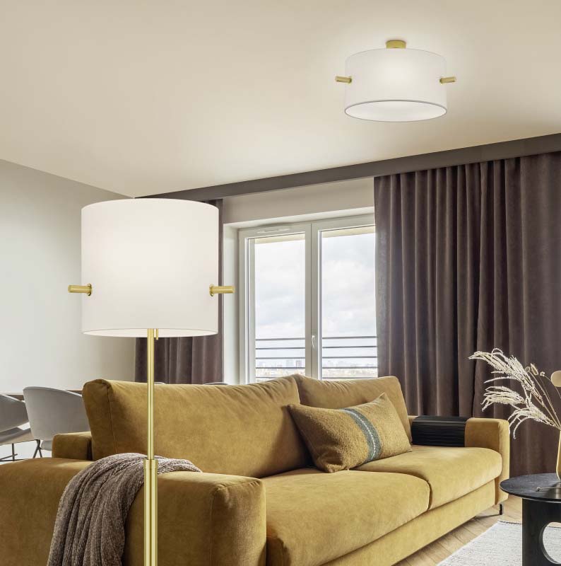 Plafoniera led classica Camden. Questa lampada da soffitto si inserisce alla perfezione in qualsiasi tipologia di ambiente in stile classico. Il paralume in tessuto ha forma circolare e contribuisce a creare un’atmosfera soffusa e accogliente.