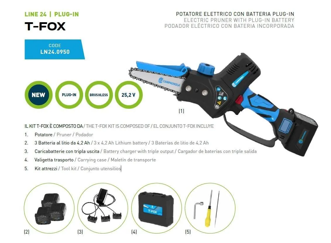 Il Potatore a batteria della Campagnola T-Fox è un prodotto professionale che semplificherà le attività di taglio e di sfoltimento.