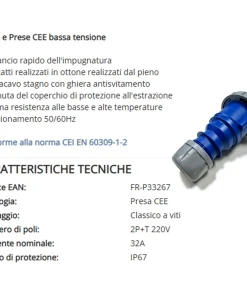 Presa Industriale Monofase CEE 2P+T 32A 220V FRIGGERI Bassa Tensione con Aggancio Rapido e Protezione IP67 articolo FR-P33267