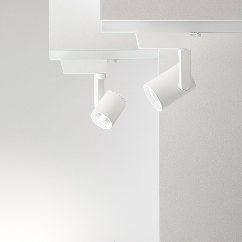 Proiettore led a binario Akina. Una sorgente di luce moderna ed essenziale, dalle linee conosciute e definite. Solitamente un proiettore led viene impiegato per direzionare un fascio di luce in un punto in particolare, per esaltare una zona o della merce esposta.