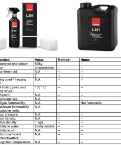 L301 Leather Fast Cleaner pulisce rapidamente olio per il corpo, sporco, grasso, lozioni varie, materiale organico, e molto altro.