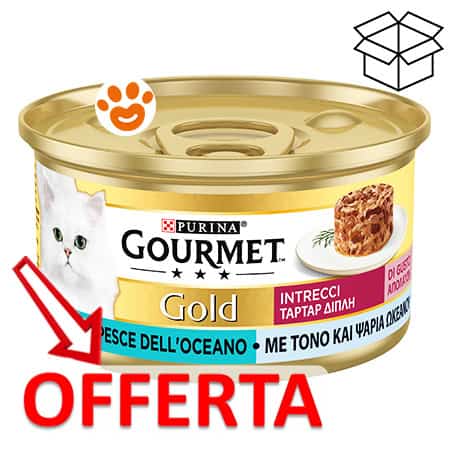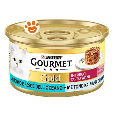 GOURMET™ Gold Intrecci di Gusto è preparato con pezzettini finemente sminuzzati di manzo e pollo, salmone e merluzzo, o altre varietà attentamente selezionate, insaporite con cura da un tocco di salsa: prelibate creazioni dal duplice gusto, per deliziare il tuo gatto ad ogni assaggio. Tutte le ricette GOURMET™ Gold non contengono coloranti, conservanti e aromi artificiali aggiunti.
