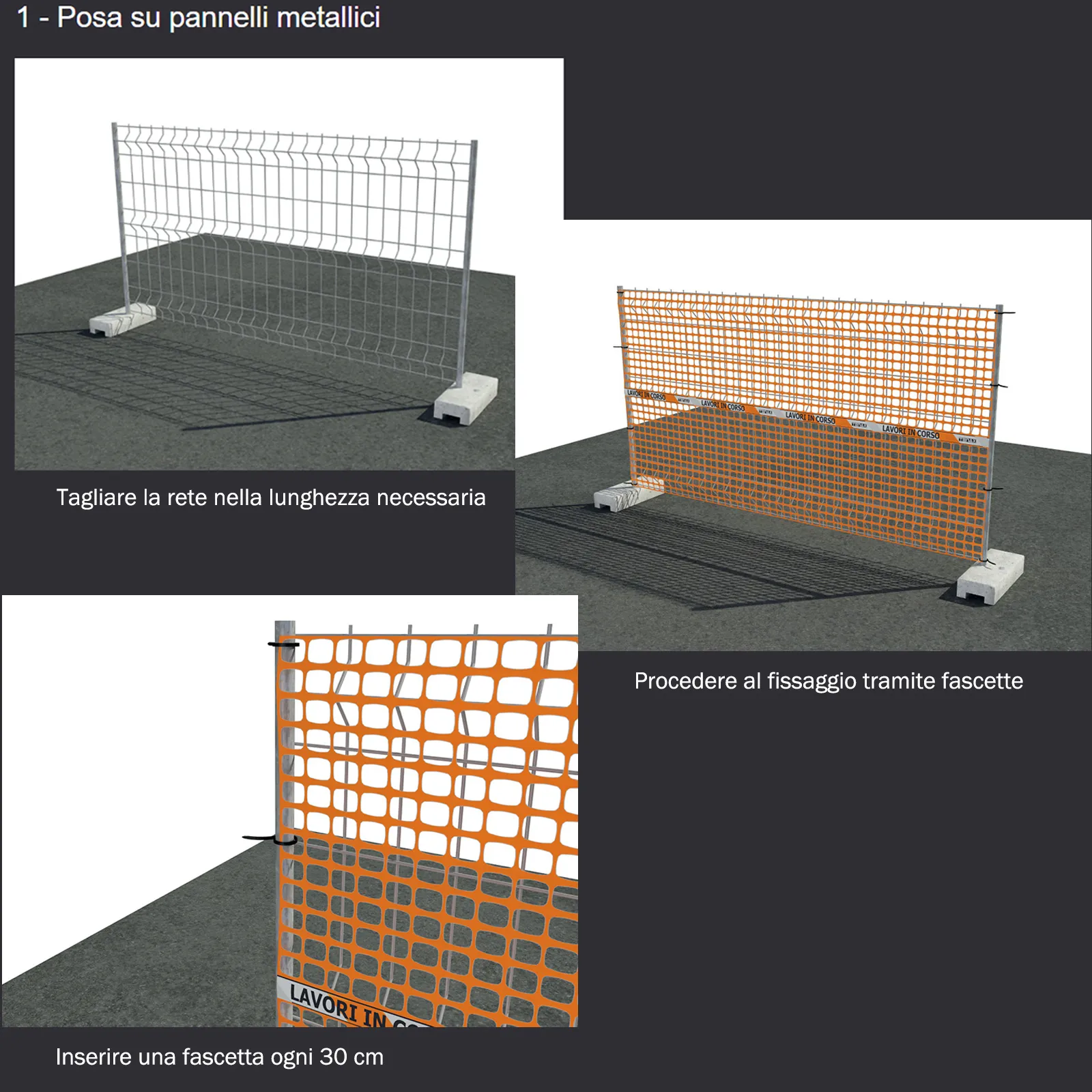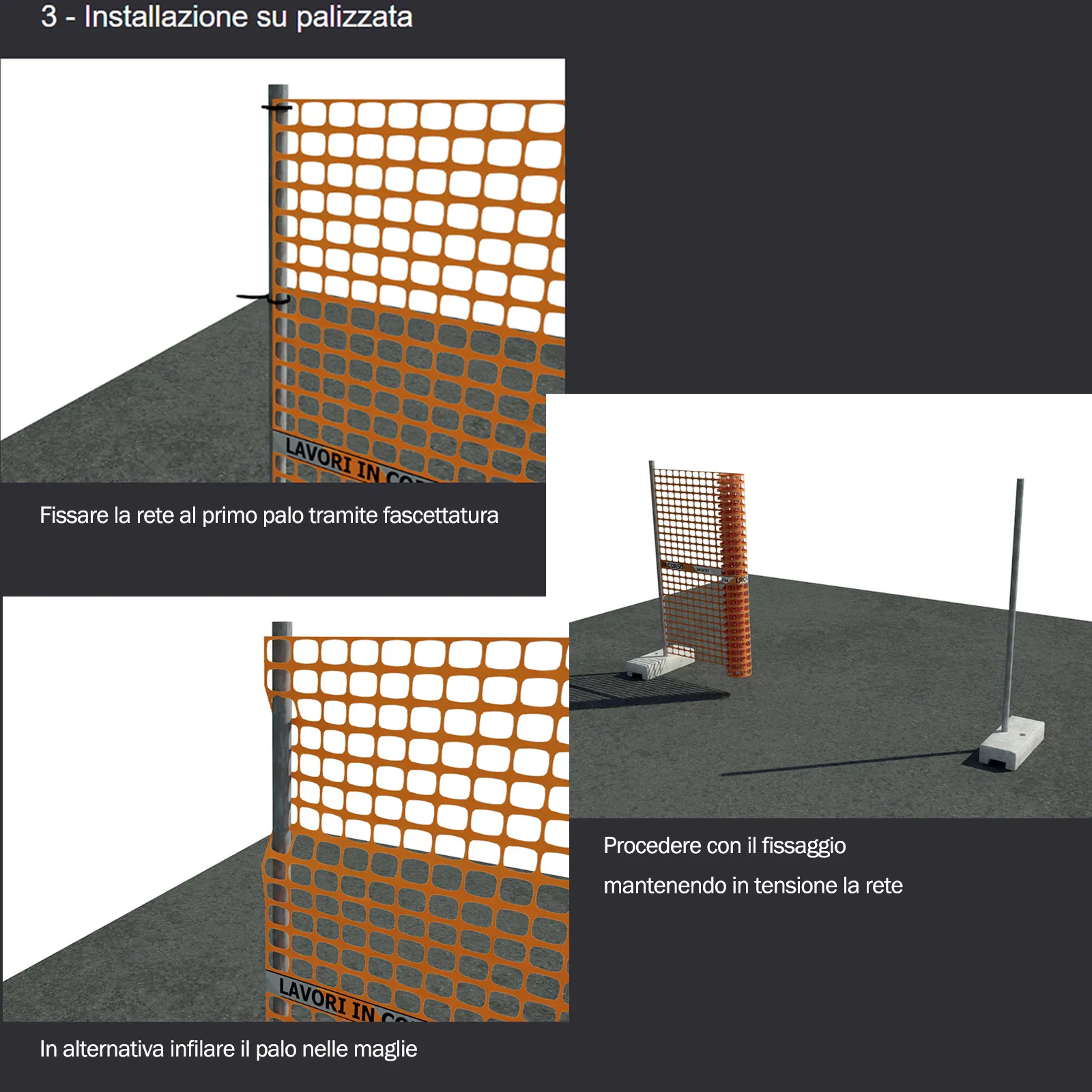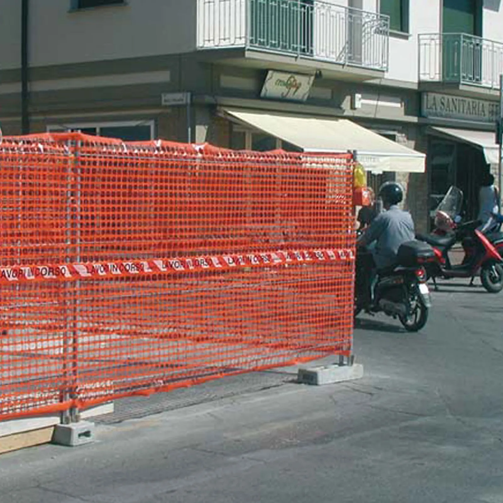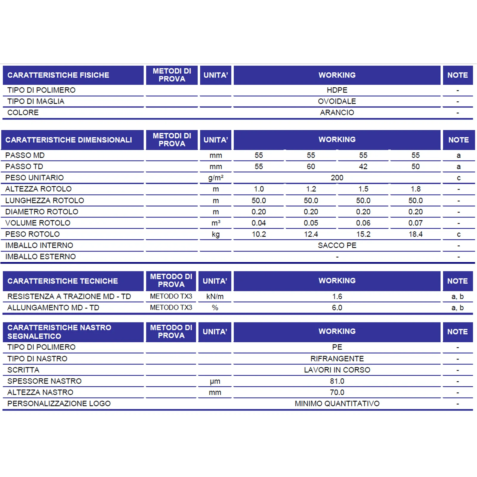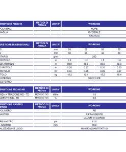 Dotata di nastro bianco e rosso a bande rifrangenti e scritta “Lavori in corso” termo-accoppiato in corrispondenza della fascia centrale.