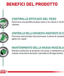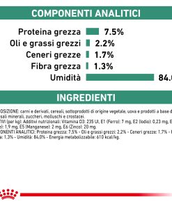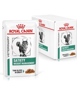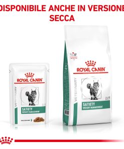 ROYAL CANIN SATIETY WEIGHT MANAGEMENT fettine in salsa, è un alimento dietetico completo per gatti indicato per la riduzione dell’eccesso di peso corporeo. Questo alimento ha un basso potere energetico.