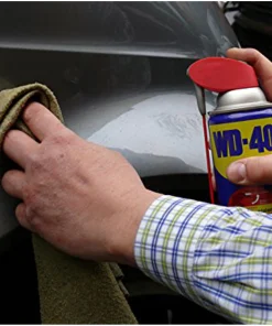 WD-40® elimina facilmente macchie di grasso, catrame, colla, etc. da qualunque superficie non porosa
