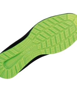 L’elevato assorbimento dello shock d’impatto è ottenuto con un materiale altamente resiliente e una perfetta bombatura al centro del tacco