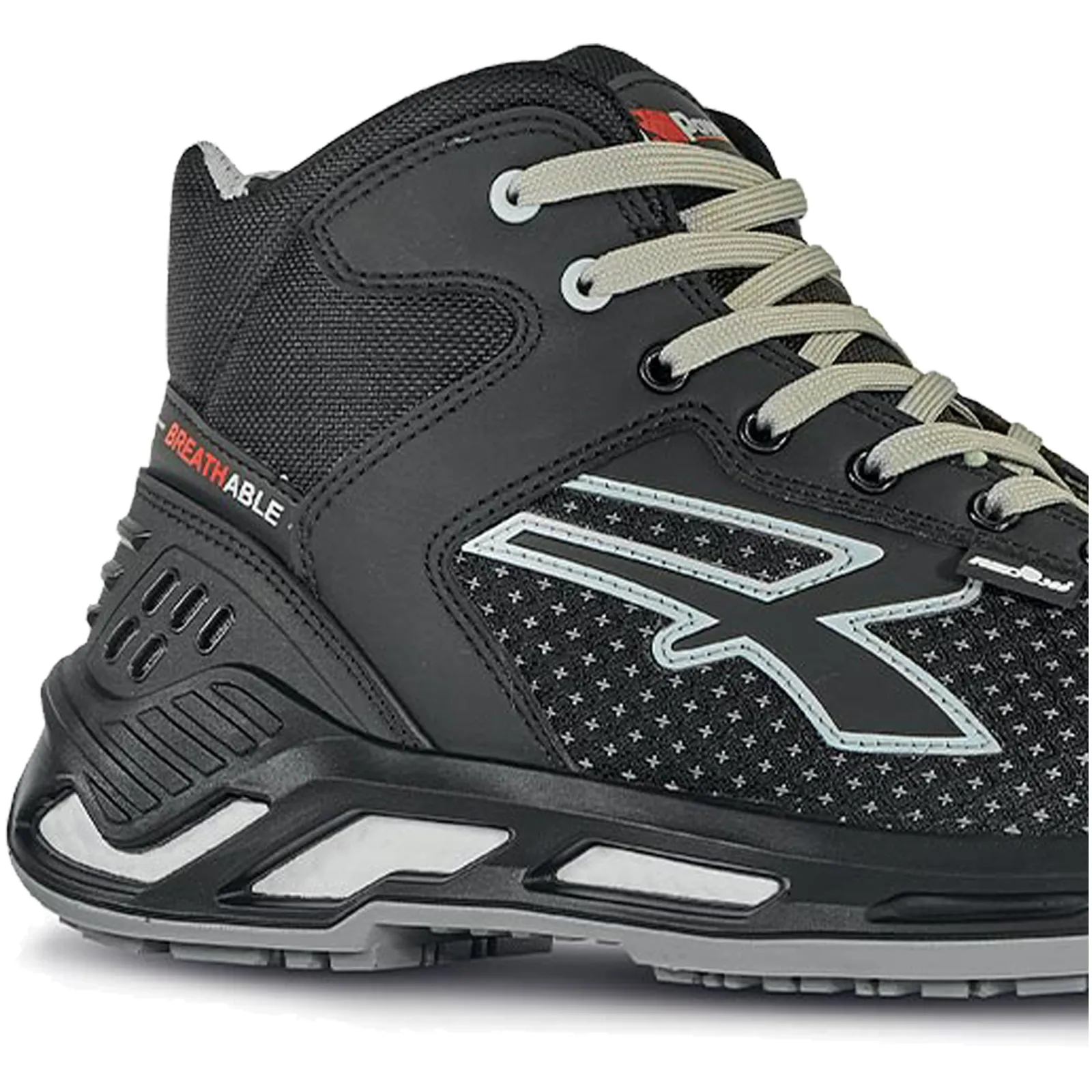 Tomaia in PUTEK® star altamente resistente all’abrasione, collarino in Lycra, puntalino in PU e tallonetta anti-shock