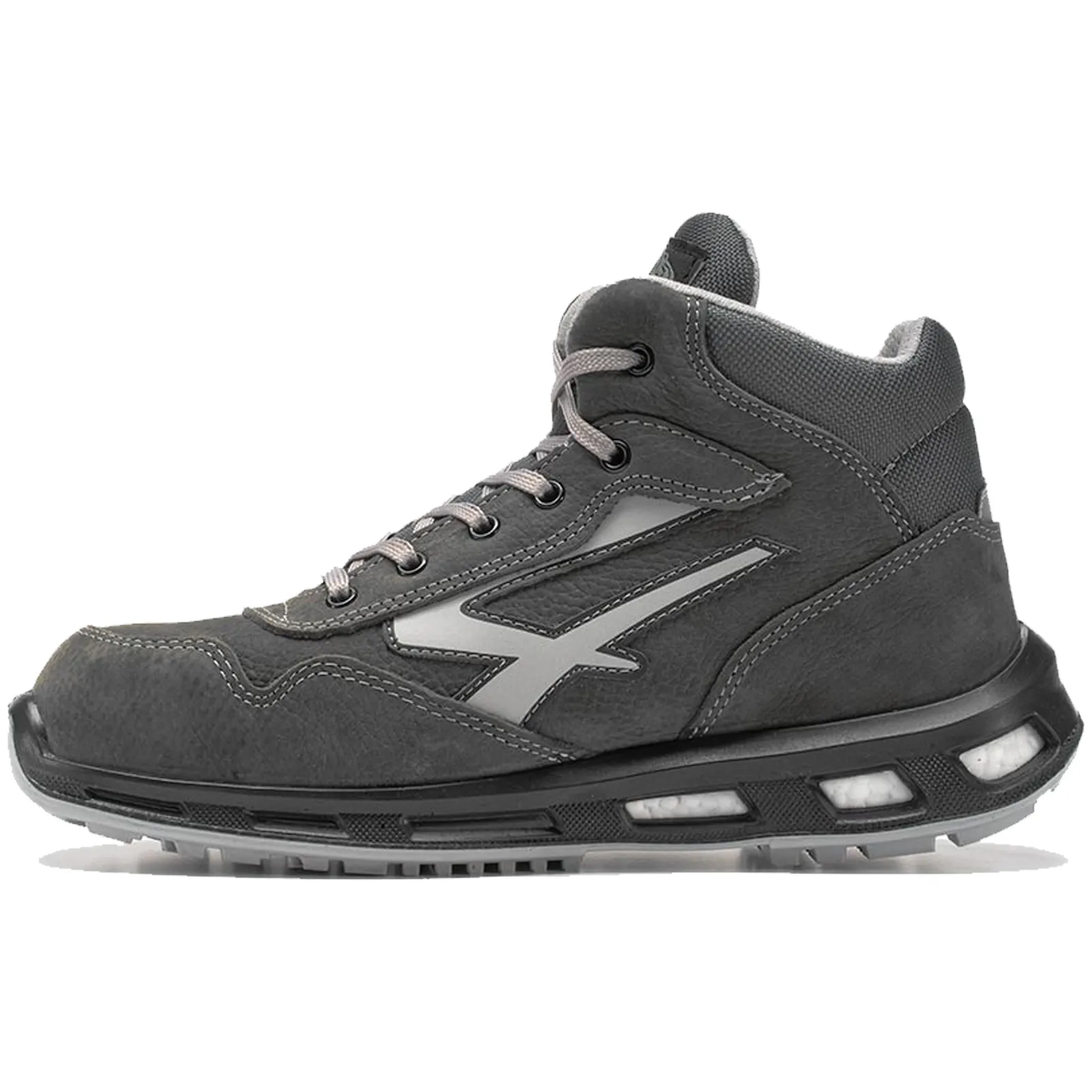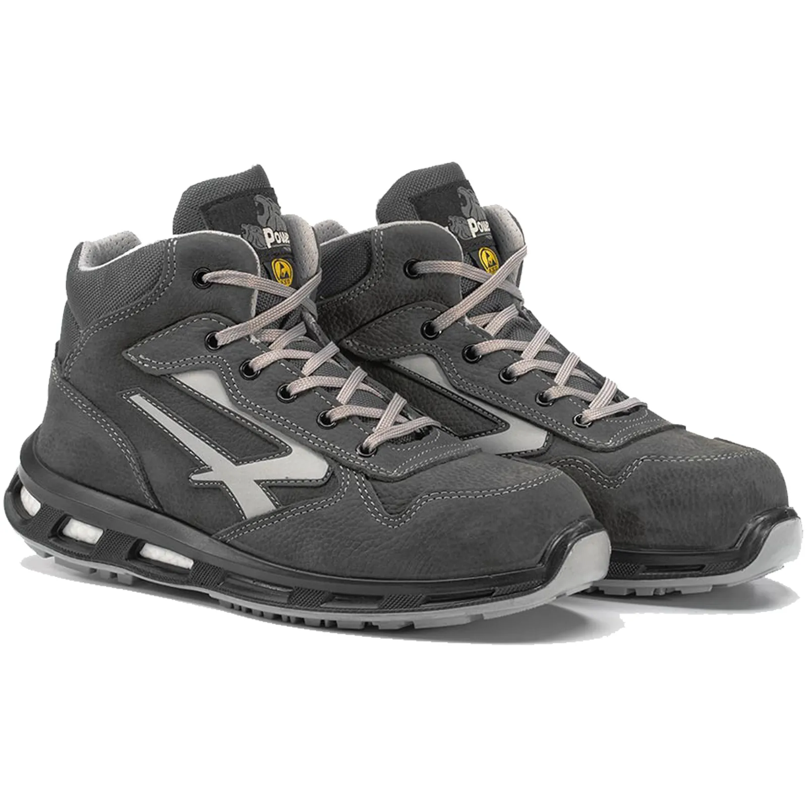 Infine il battistrada è realizzato in PU compatto anti abrasione, antiolio, antiscivolo e antistatico.