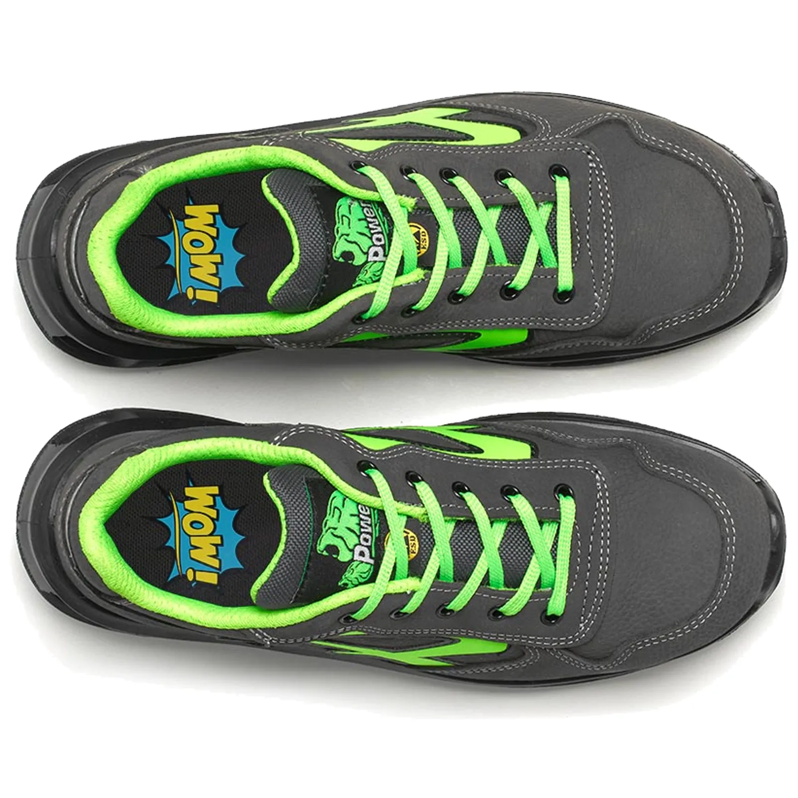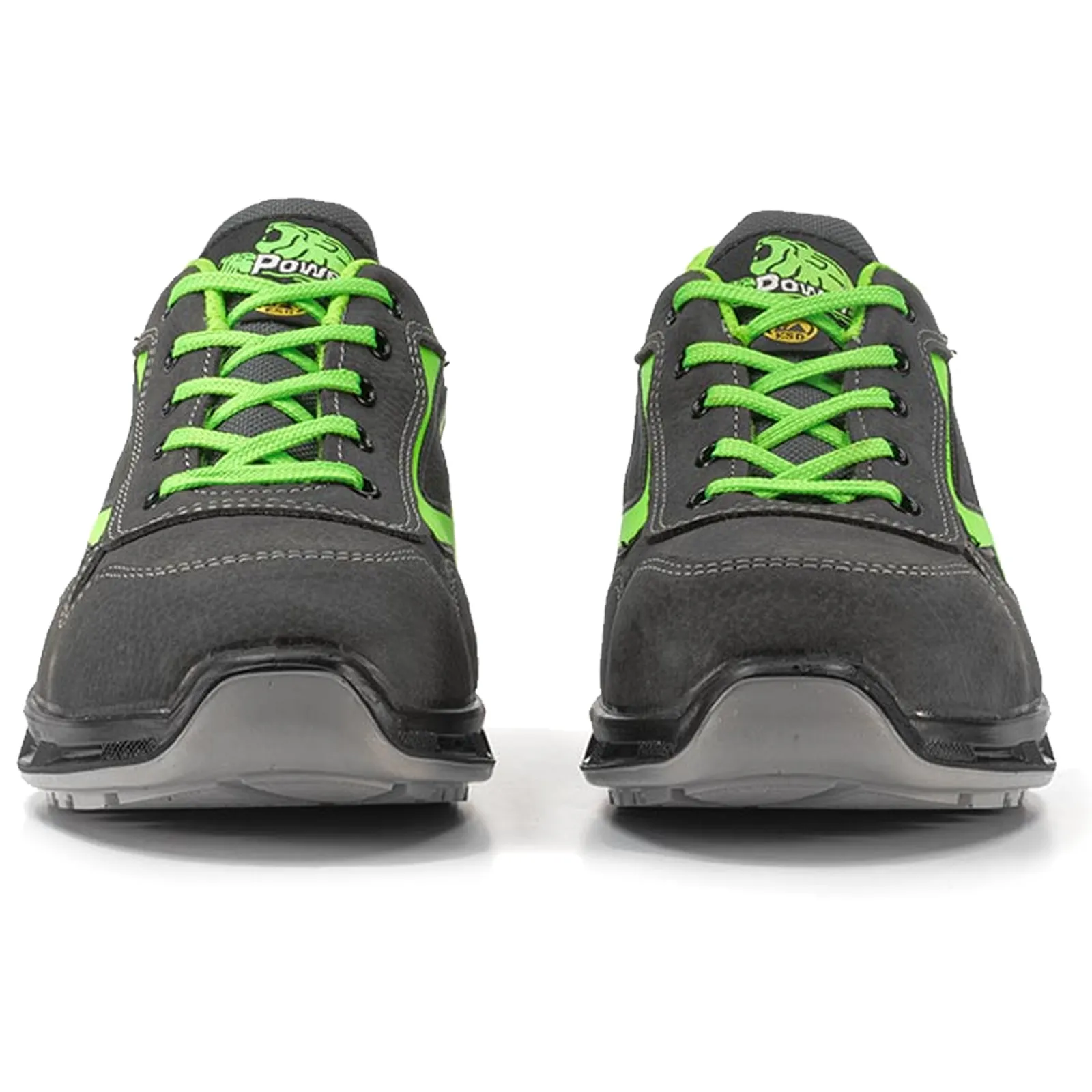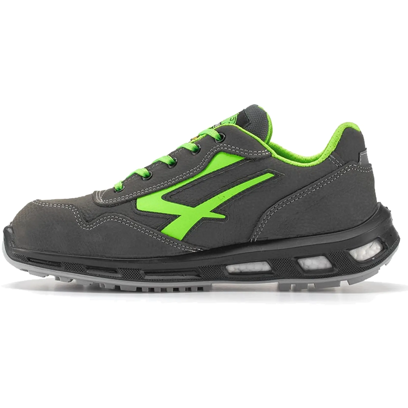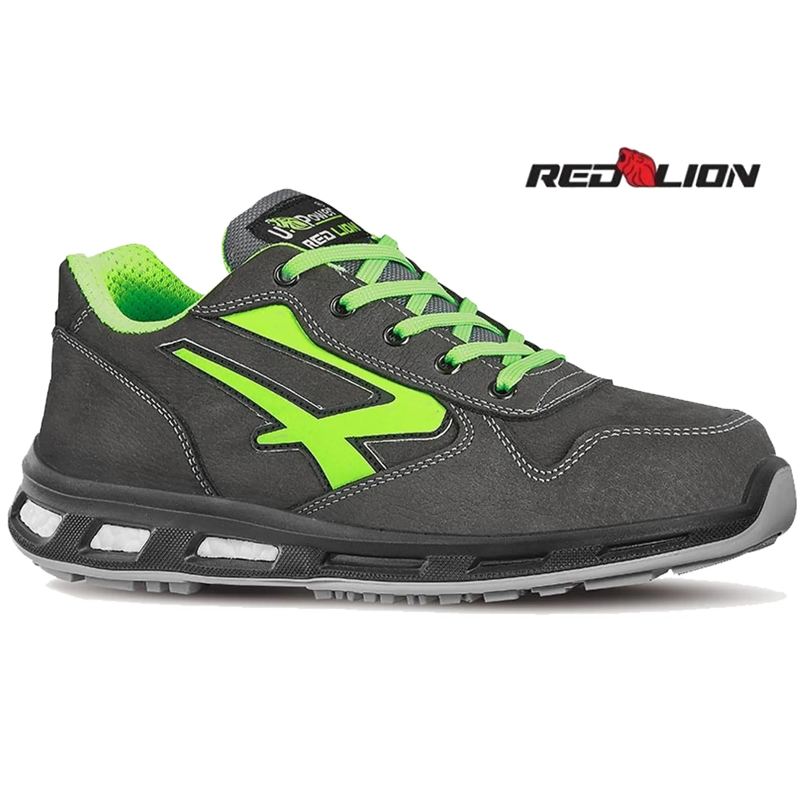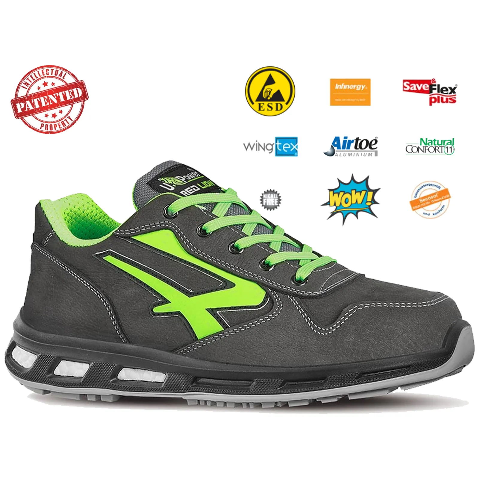 Scarpe antinfortunistiche basse, leggere e comode u power della linea Red Lion, con tomaia in pelle nabuk naturale bottalato, traspiranti, idrorepellente, puntale in alluminio, antiperforazione, antiscivolo e suola PU/PU, infinergy S3 SRC CI ESD