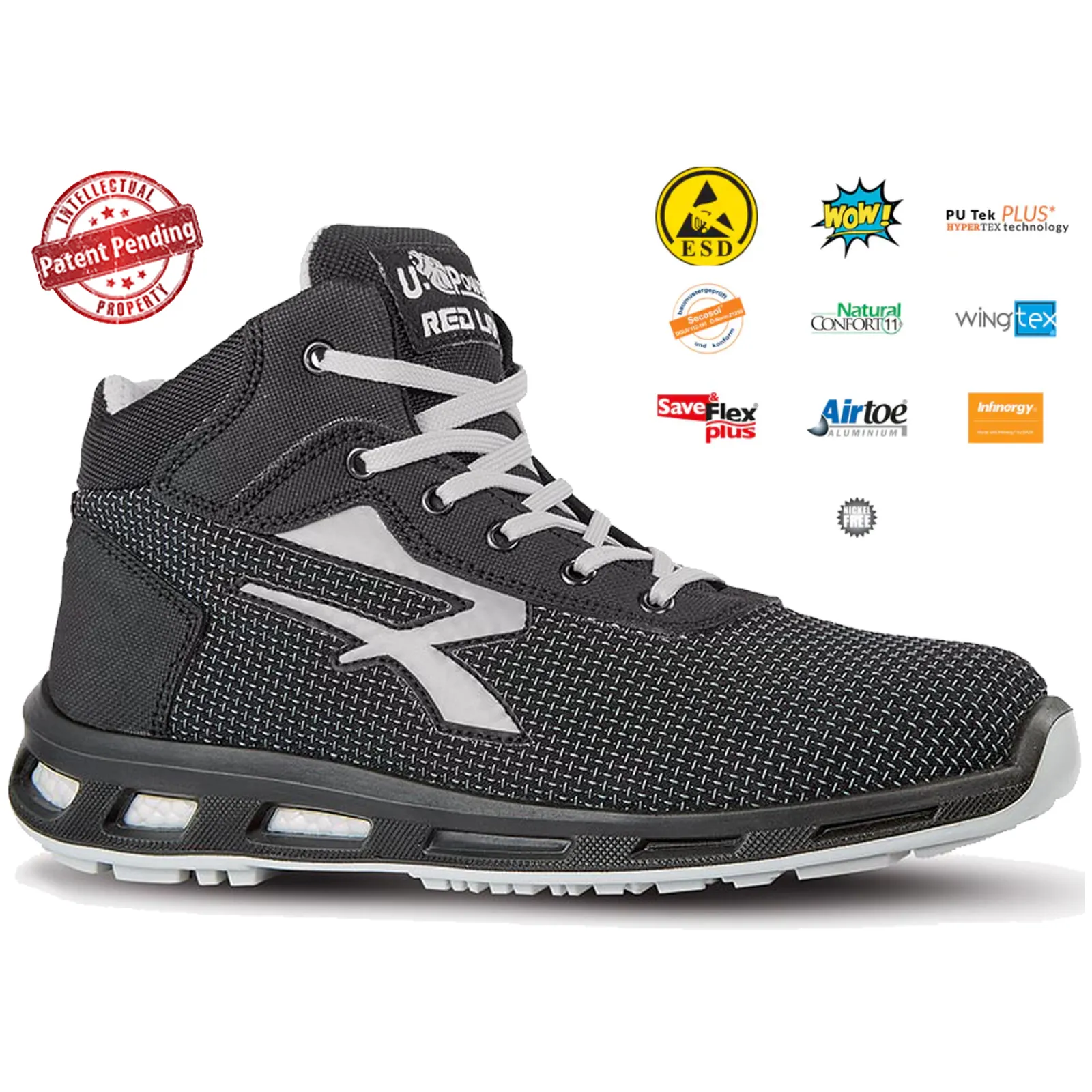 Scarpa antinfortunistica RedLion®, con puntale AirToe® in alluminio e sistema anti-perforazione Save & Flex Plus, progettata per garantire un benessere prolungato del piede.