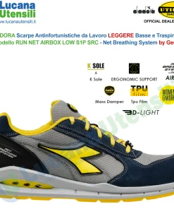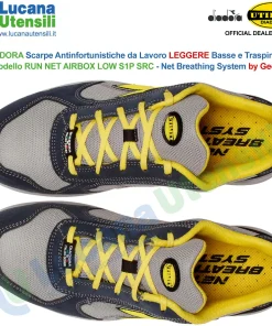 Calzatura di sicurezza bassa S1P in crosta scamosciata e mesh con sistema di traspirazione laterale Net Breathing System by Geox©