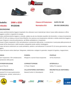 Scarpe antinfortunistiche leggere e traspiranti U-Power modello DIWI: comfort e sicurezza sul lavoro.