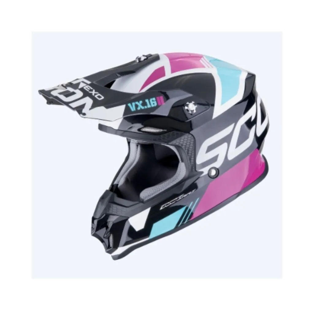 Il VX-16 EVO Air ha ereditato le grandi caratteristiche della serie VX-15, come l’AirFit, la grande apertura oculare, la presa d’aria per la bocca rimovibile e l’estensione del picco della visiera, mentre offre una vestibilità migliorata con guanciali sagomati 3D tagliati al laser, uno spazio più ampio per il mento per respirare in modo più confortevole e un peso più leggero grazie alla calotta termoplastica avanzata di ScorpionEXO.