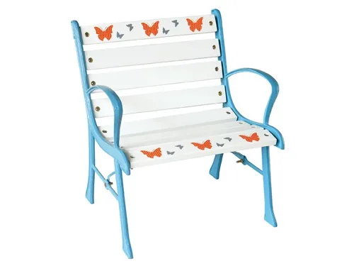 Sedia panchina in ghisa per bambini verniciata con polveri epossidiche di colore celeste.