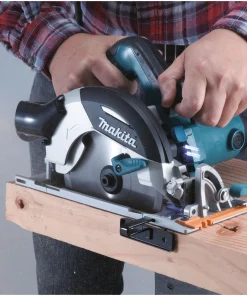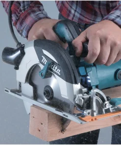 Sega circolare professionale dotata di motore da 1.400W, e carter della lama con ampia bocchetta di aspirazione (attacco aspirapolvere) e velocità del disco di 5500 giri al minuto.