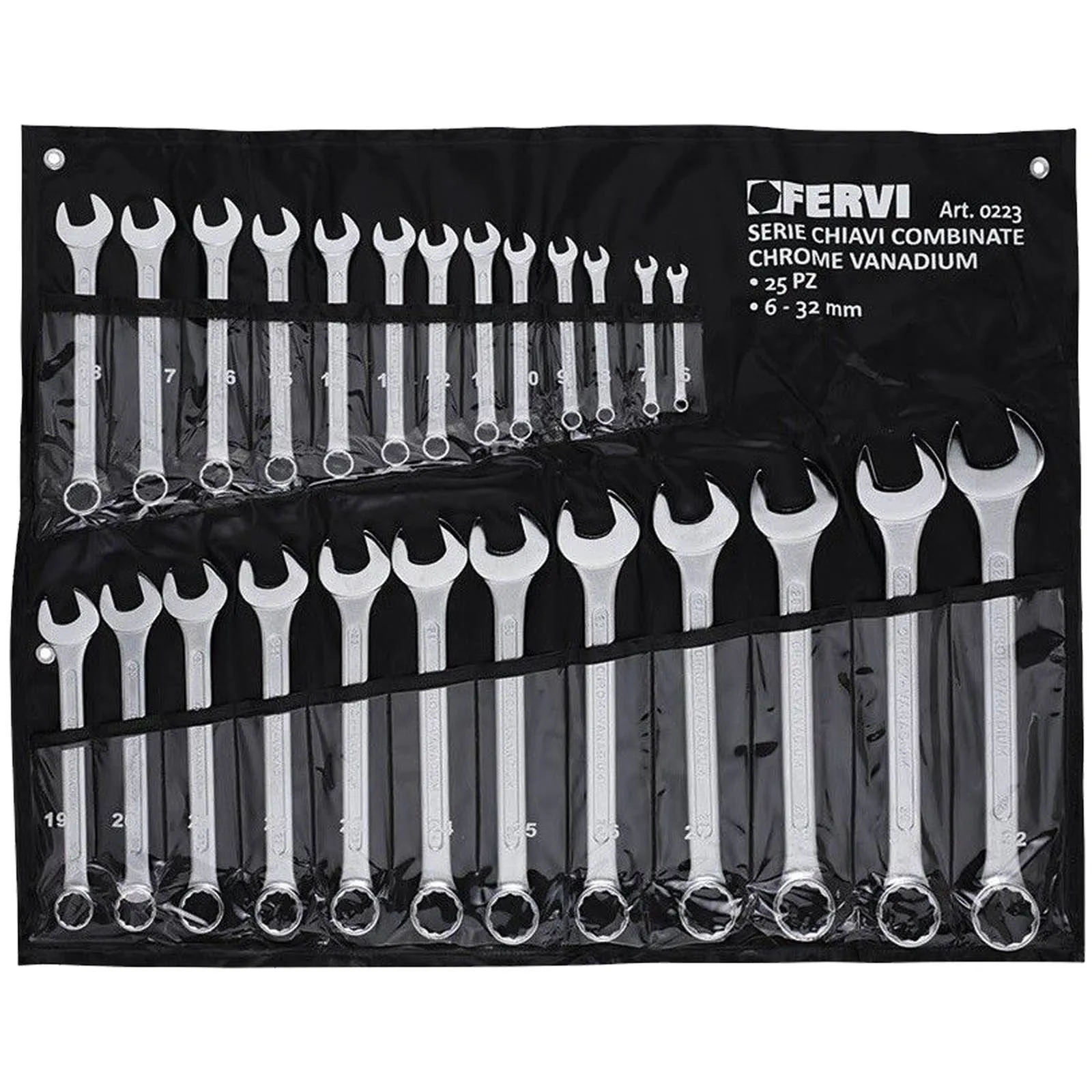 Serie 25 Chiavi Combinate Fisse a Stella FERVI dalla 6 alla 32 Cromate Satinate Cr-V Set Kit 0223
