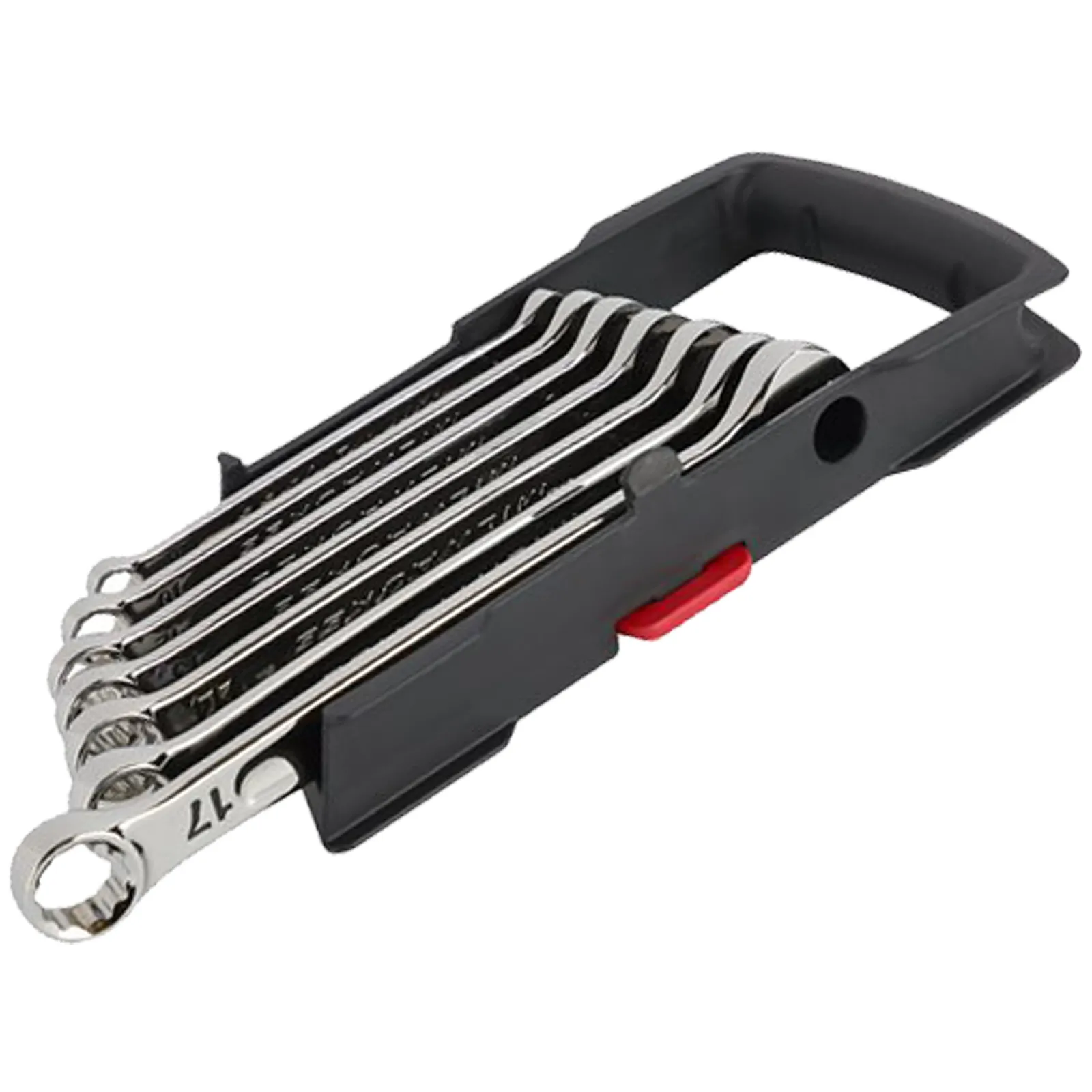 Il set dispone di un pratico alloggiamento/supporto in plastica per riporre ordinatamente le chiavi, corredato da una comoda maniglia di trasporto.