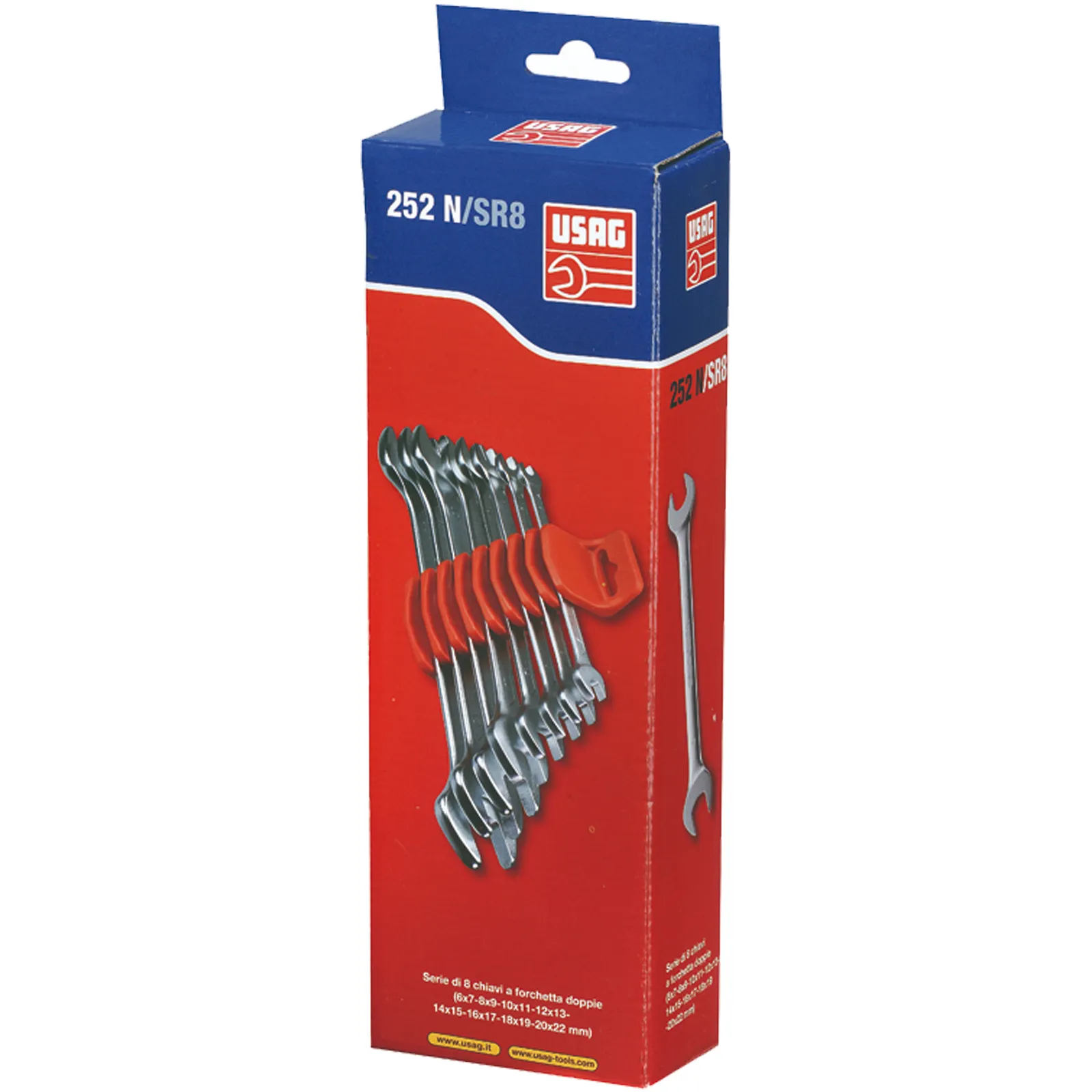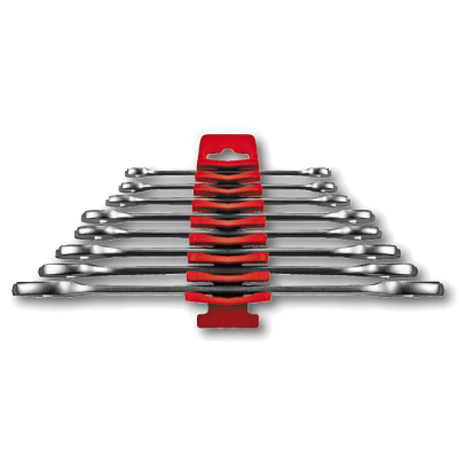 Serie da 8 pezzi di chiavi a forchetta doppia dalla 6 alla 22, con forchetta 15° in acciaio.