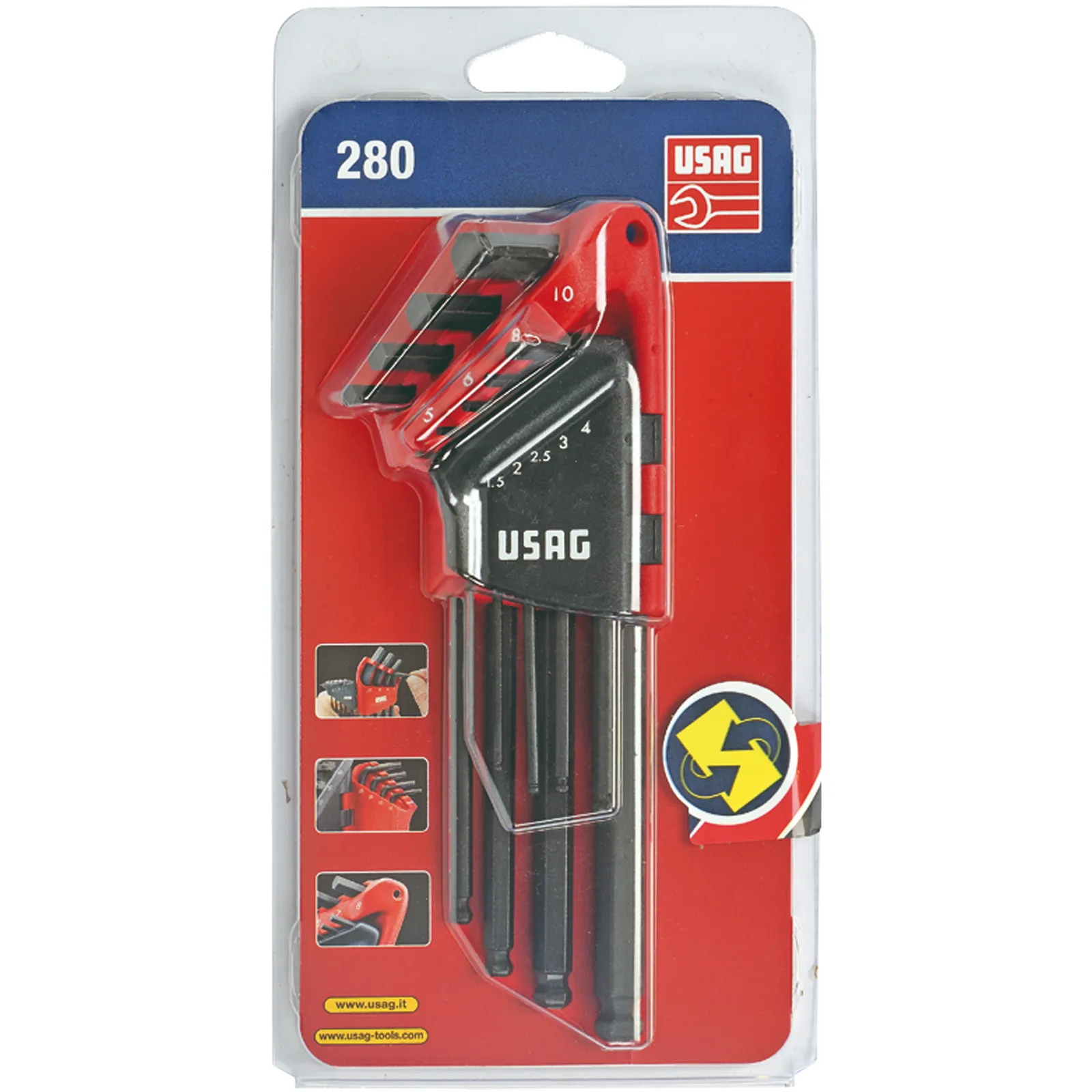 Serie da 9 pezzi di chiavi maschio esagonali lunghe per viti con esagono incassato.