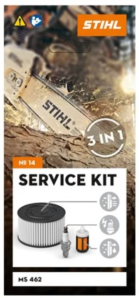 Con i Service Kit per motoseghe a miscela STIHL, è possibile eseguire autonomamente una semplice manutenzione. Ogni kit comprende una candela, un filtro carburante e un filtro dell’aria in tessuto non tessuto. Oltre a preservare i componenti dell’attrezzatura da impurità e danni, la manutenzione standard proattiva e regolare prolunga la durata della motosega nel tempo. Oltre alla chiave combinata, già in dotazione con la motosega STIHL, non sono necessari altri strumenti per la manutenzione.
