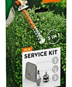 Con i service kit per tosasiepi STIHL, è possibile eseguire autonomamente una semplice manutenzione. Il kit comprende una candela, un filtro carburante e un filtro dell’aria in tessuto non tessuto. Oltre a preservare i componenti dell’attrezzatura da impurità e danni, la manutenzione standard proattiva e regolare prolunga la durata del tosasiepi nel tempo. Oltre alla chiave combinata, già in dotazione con il tosasiepi STIHL, non sono necessari altri utensili per la manutenzione.