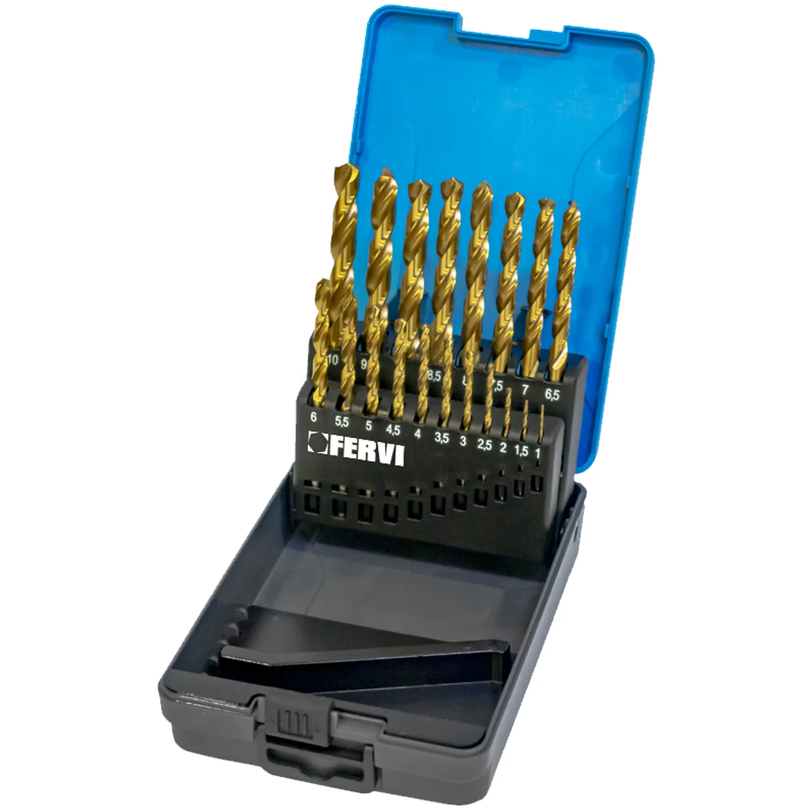 Set di punte da 19 pezzi Fervi in acciaio super rapido (HSS).