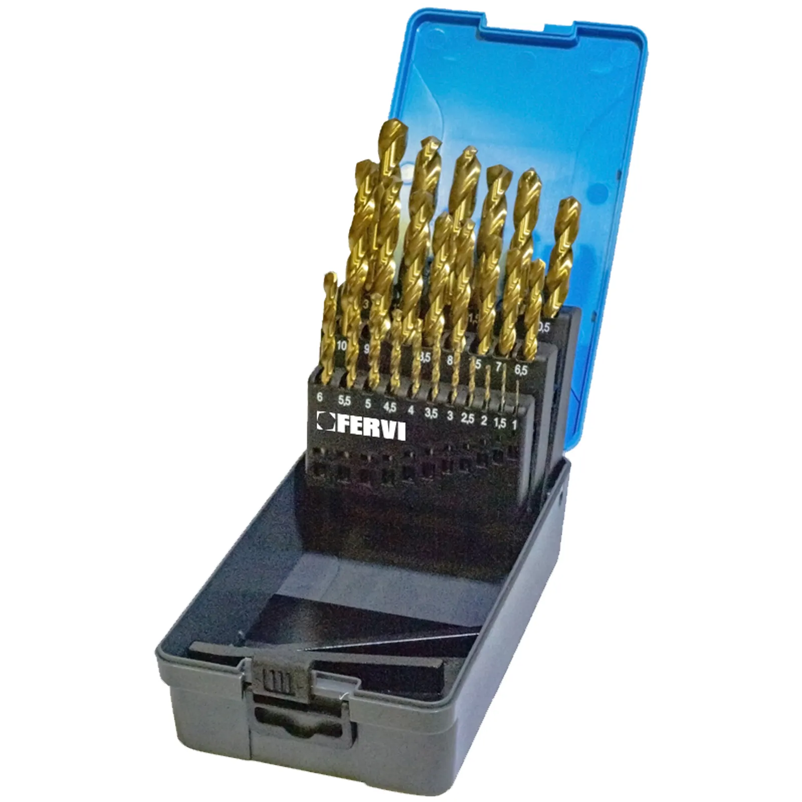 Set di punte da 25 pezzi Fervi in acciaio super rapido (HSS).
