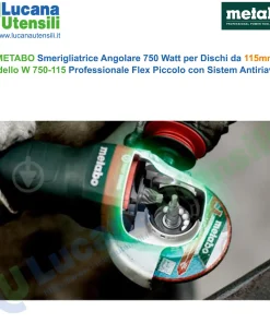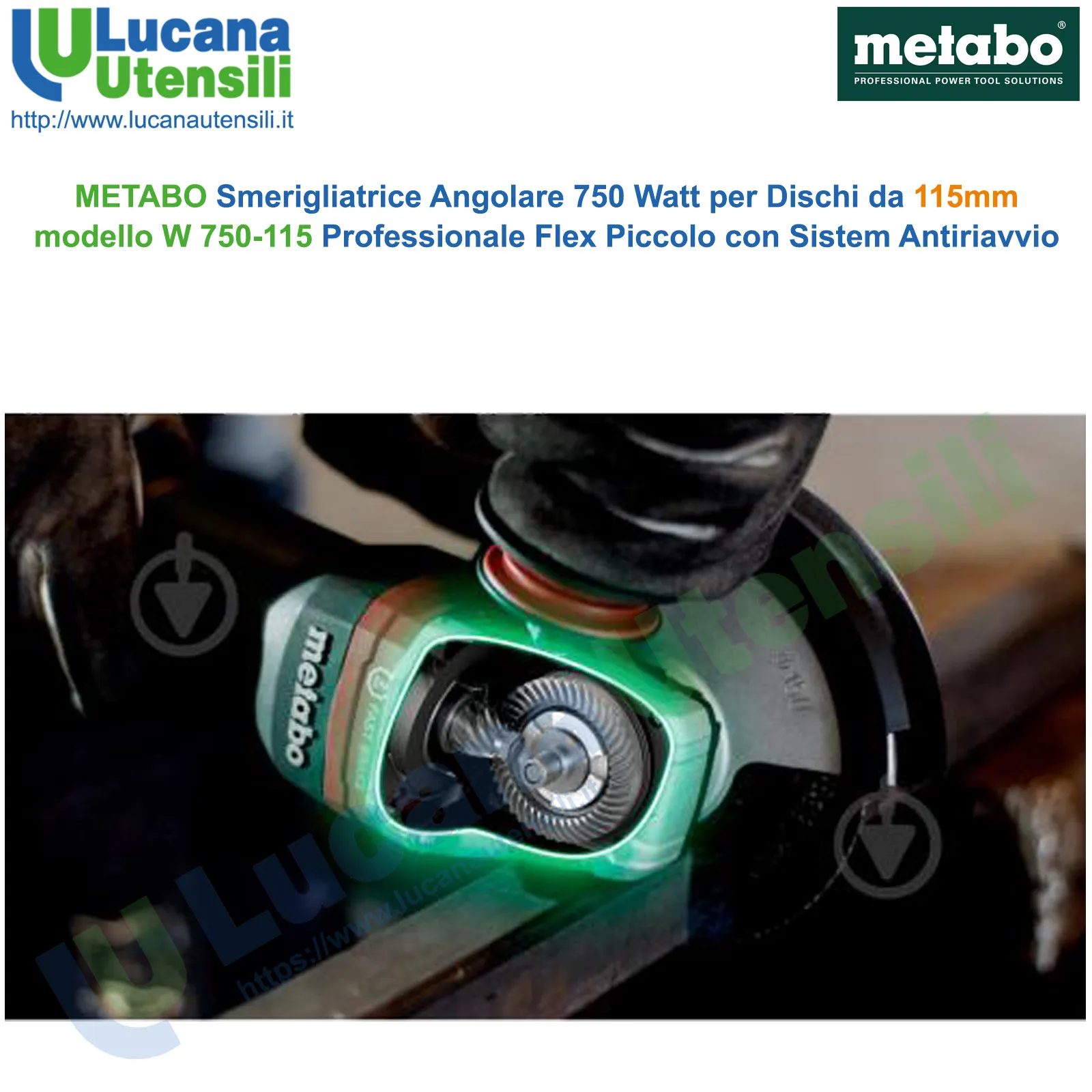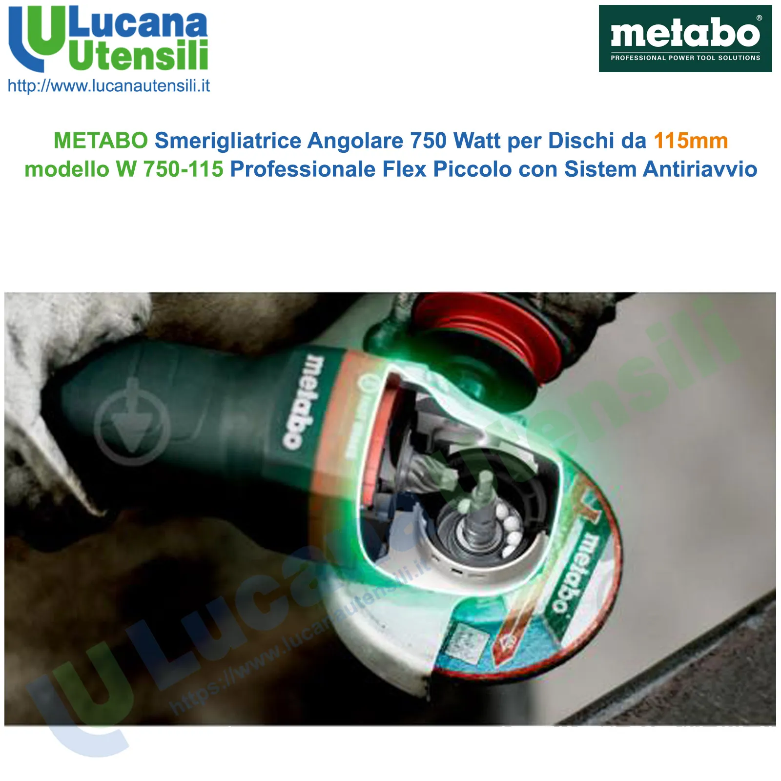 La smerigliatrice angolare Metabo modello W 750-115 è un’apparecchio Robusto, universale e conveniente adatta per eseguire per qualsiasi lavoro.