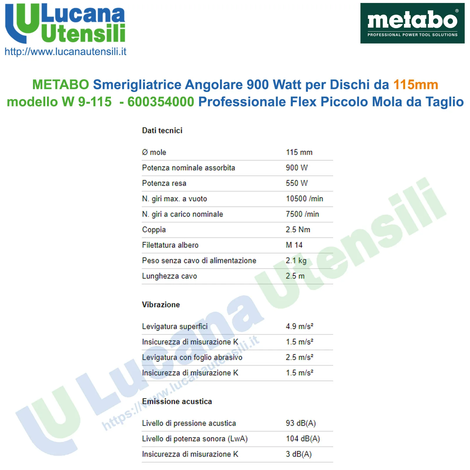 Livello di potenza sonora (LwA): 104 dB(A)